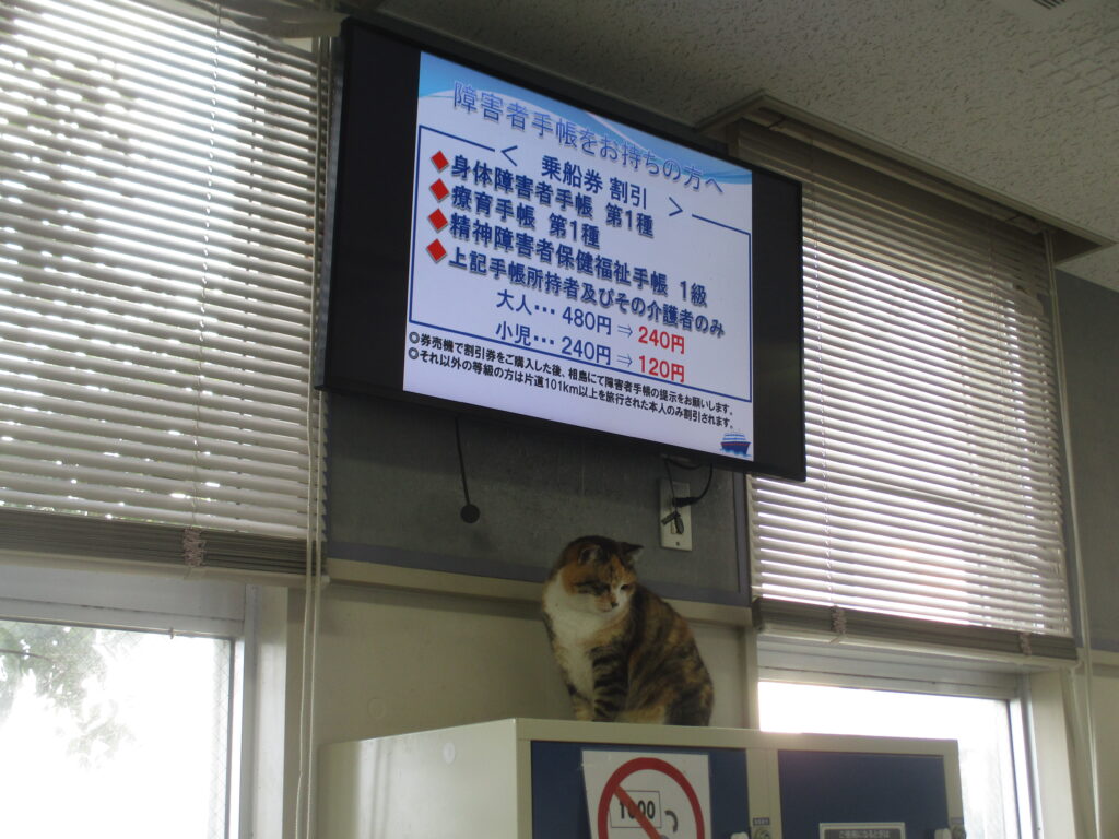 相島は2013年に米メディアCNNから「世界6大猫スポット」として認定されたことをきっかけに、『猫の島』として海外からの旅行客も多く訪れているようです。まずはこちらで船の乗船券を購入します。