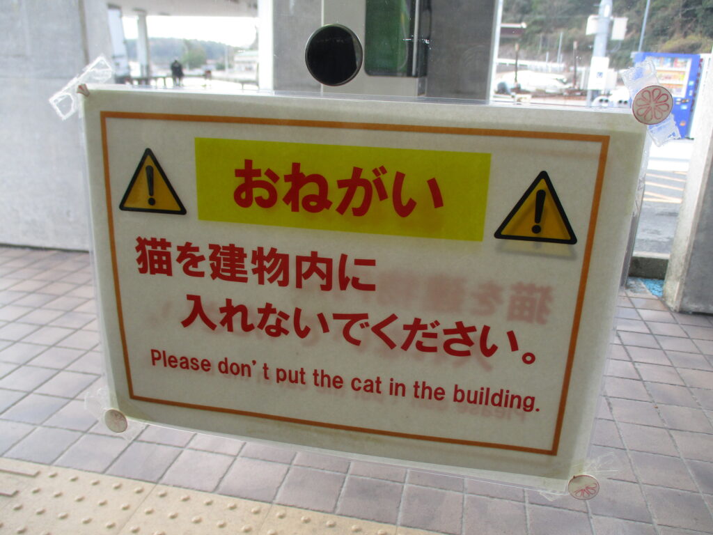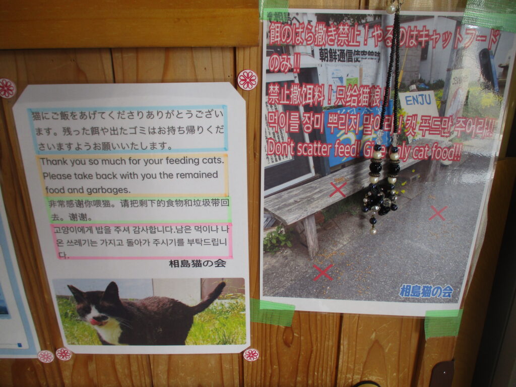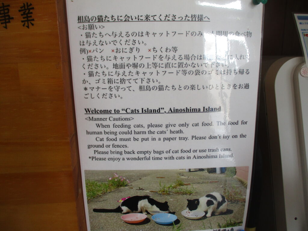 そして、そこに掲示されていた案内によると、相島ではキャットフードであれば、猫に与えてもよいというルールになっているようです。