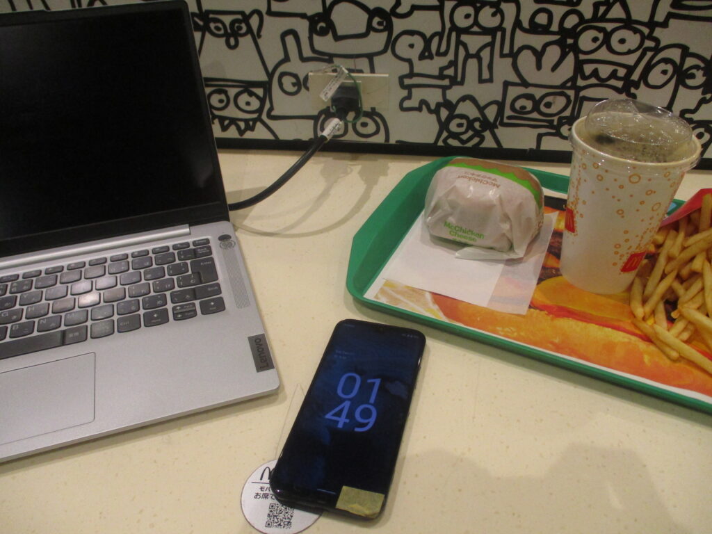20分ほど歩いて到着しました。久しぶりに那覇空港がオープンする朝6時までマック泊です。
