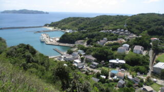 小笠原諸島・母島を日帰りで観光しています。歩いていると、道路沿いの茂みで母島の固有種「メグロ」を発見しました。小剣先山にも登ることに。標高103.5mの小剣先山の頂上に到着。母島に上陸したら訪れるべきスポットだと思います。残りの時間は集落を散策しながら港へと戻ります。