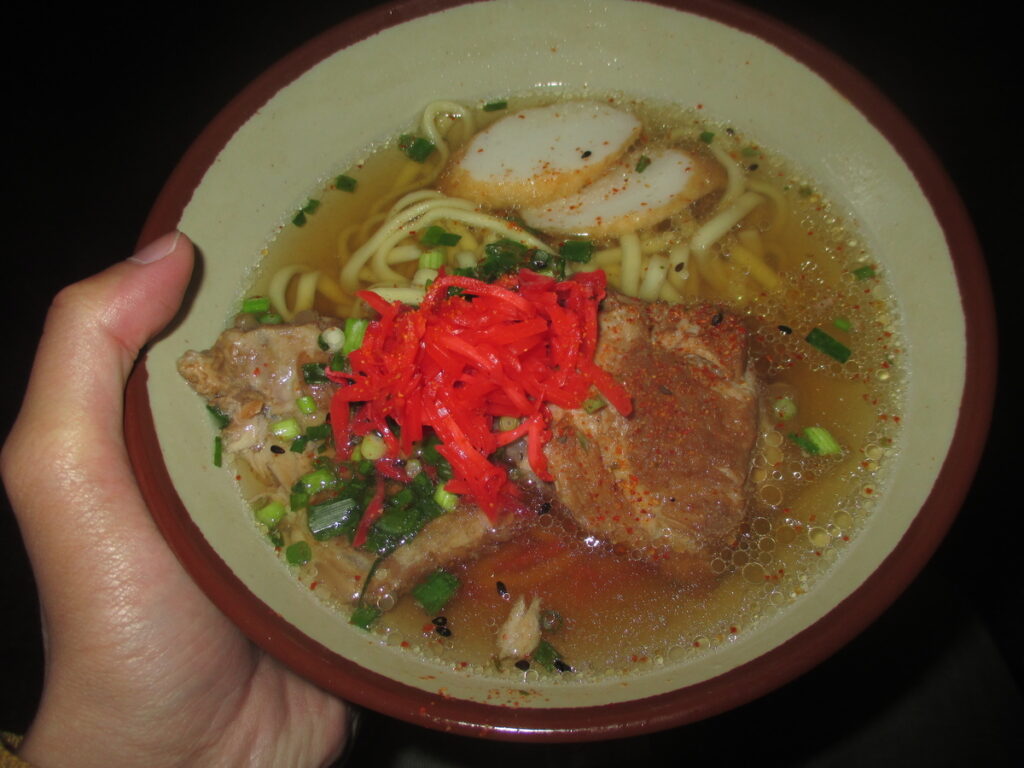 それから30分ぐらいで、名も知らぬおっちゃんと一緒にお店を出て、おっちゃん行きつけの沖縄そば屋さんへ。おっちゃんは沖縄に来たら毎回栄町界隈を飲み歩いているそうです。