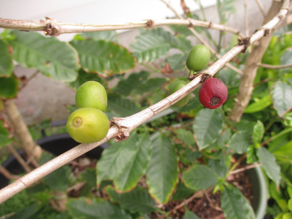 お店近くの道路沿いには、果実を付けたコーヒーの木もありました。この木はポットで育てられていますが、ドリップコーヒーを販売している栄農園さんのインスタを確認すると、露地で栽培が行われています。