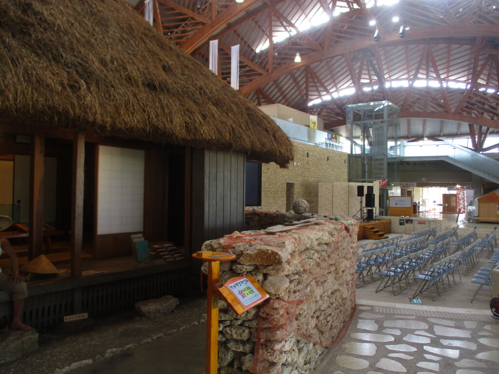 こちらはイベント広場の横に建つ「あまじいの家」。奄美大島南部から移築された古民家が展示されています。かつての奄美の家は茅葺き屋根で、周囲をサンゴ石の石垣が囲み、玄関はなく縁側から出入りしていました。与路島や喜界島などにも同様の古民家が残りますが、現在はさすがに茅葺き屋根ではありません。