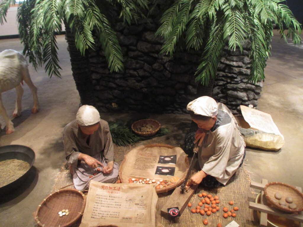 「島の道」で木の実を加工しているおばぁ達も模型。