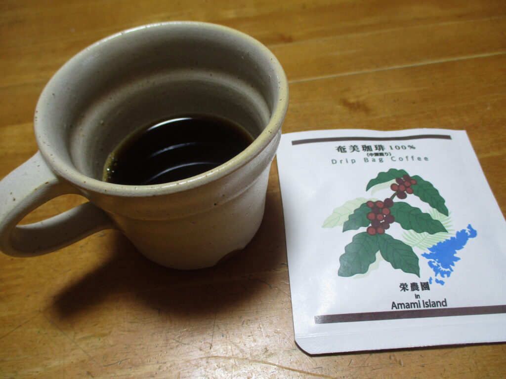 なんと奄美産コーヒー豆を100%使用したドリップコーヒーがありました。これまで国産コーヒーといえば、沖縄・小笠原・徳之島が中心でしたが、最近はその範囲が広がり、奄美大島や沖永良部島でもコーヒー栽培が行われているそうです。