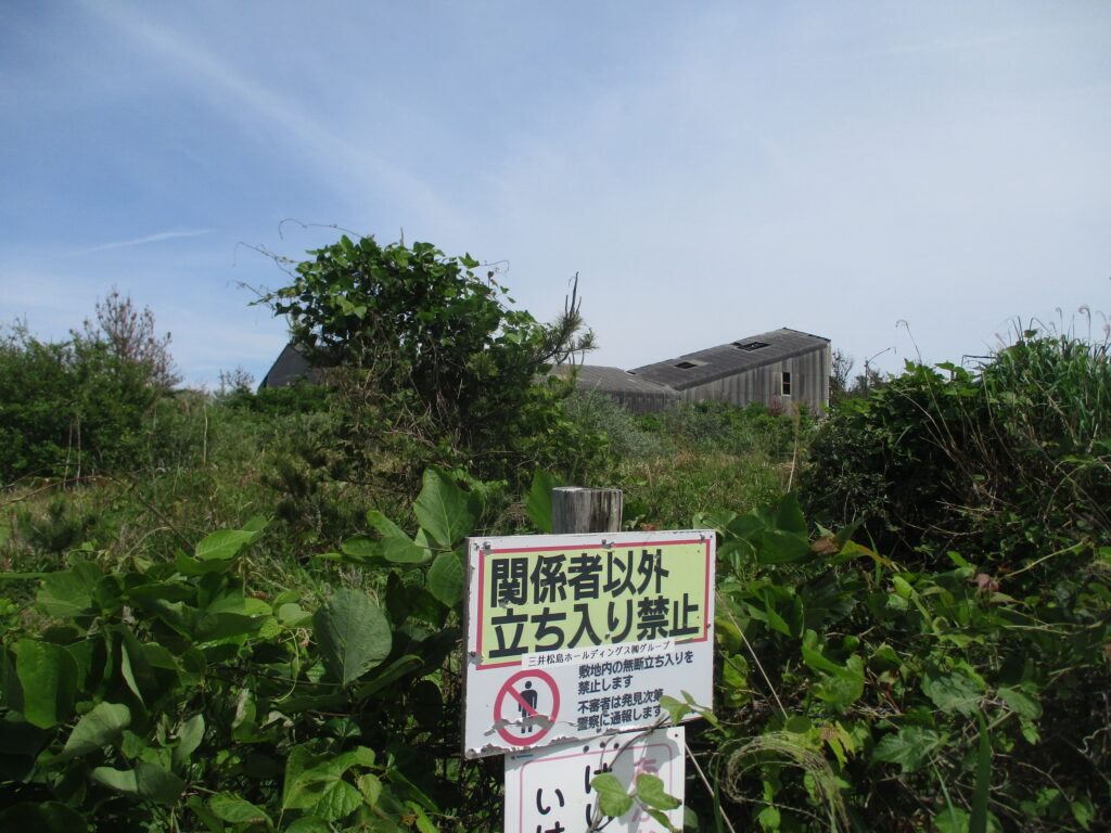 島内の各所に設置された「関係者以外立入禁止」の看板には【三井松島ホールディングス(株)グループ】の名が記されています。この企業の前身は、かつて炭鉱を運営していた松島炭鉱株式会社です。