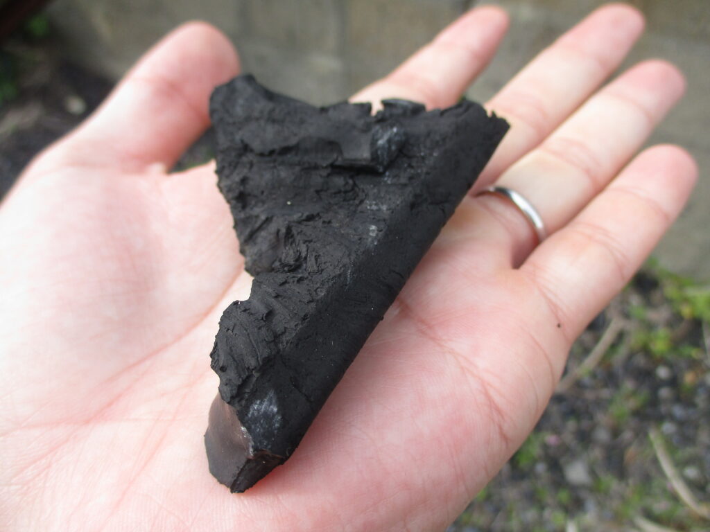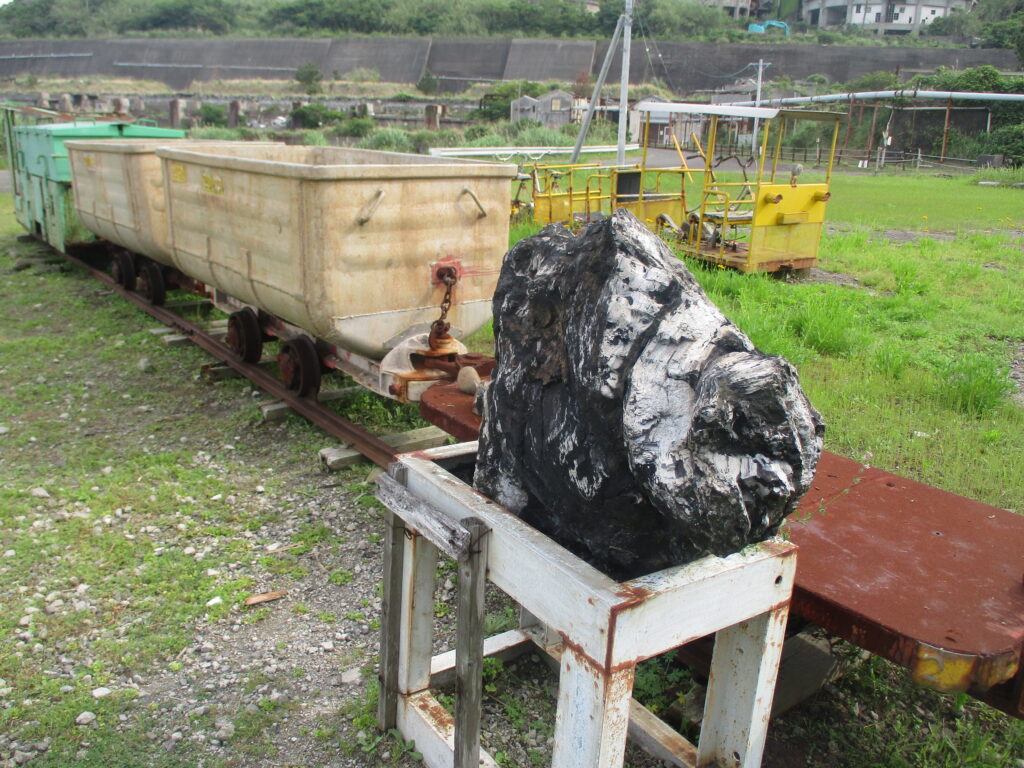 道路に石炭が落ちていました。池島の石炭は地表に露出しておらず、地下から採掘していたため、この石炭は採掘後に輸送する過程で落下したものだと思います。いつの時代のものなのでしょう。