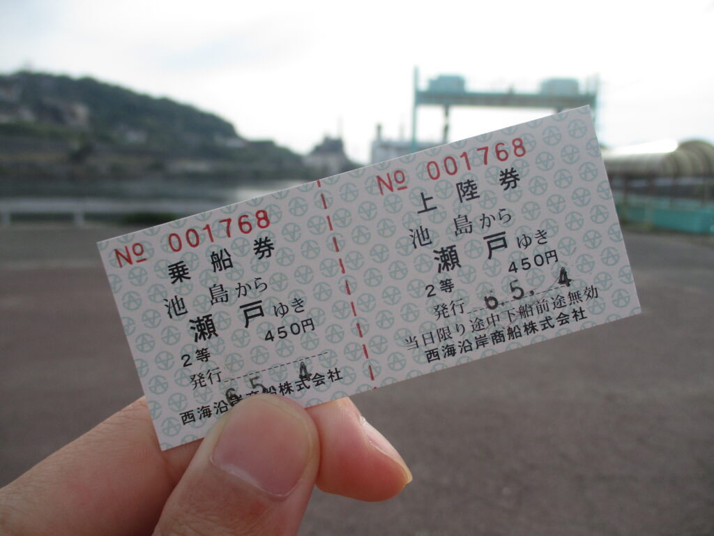 帰りの乗船券をゲット。行きは神浦港(長崎市)から船に乗りましたが、帰りは瀬戸港(西海市)へと向かいます。