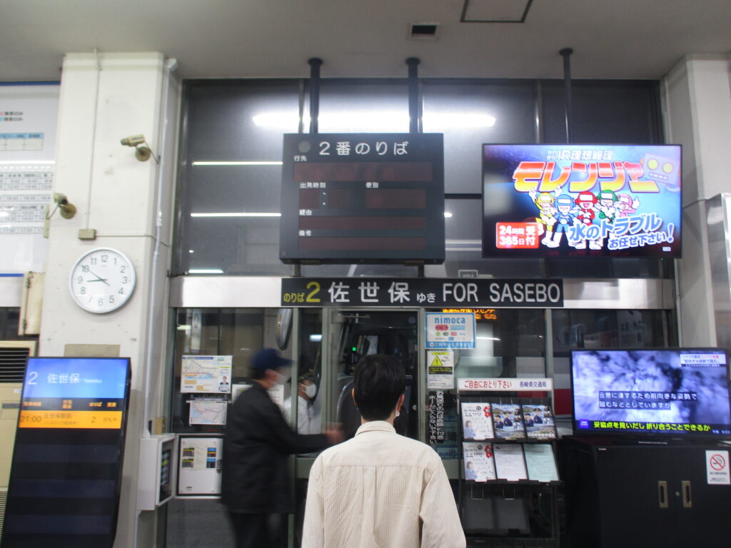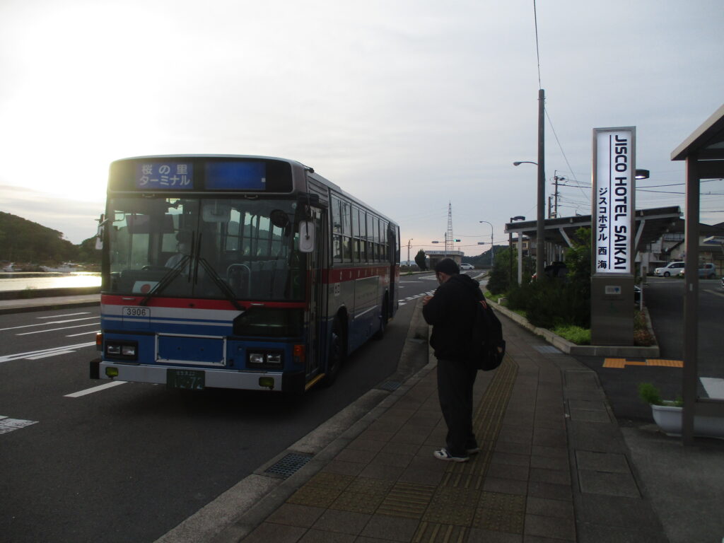 17時半頃、瀬戸港フェリーターミナルに到着しました。この日の宿は佐世保。ここからはバスの旅です。
