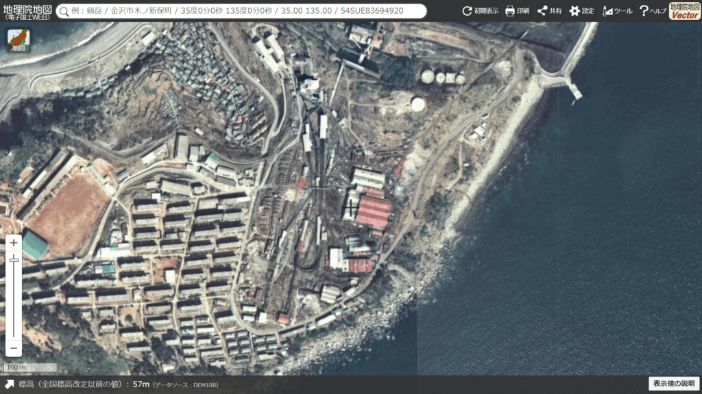 1970年代の航空写真を見ると、もともとこの辺りには線路や倉庫など、炭鉱関連施設があったことが分かります。