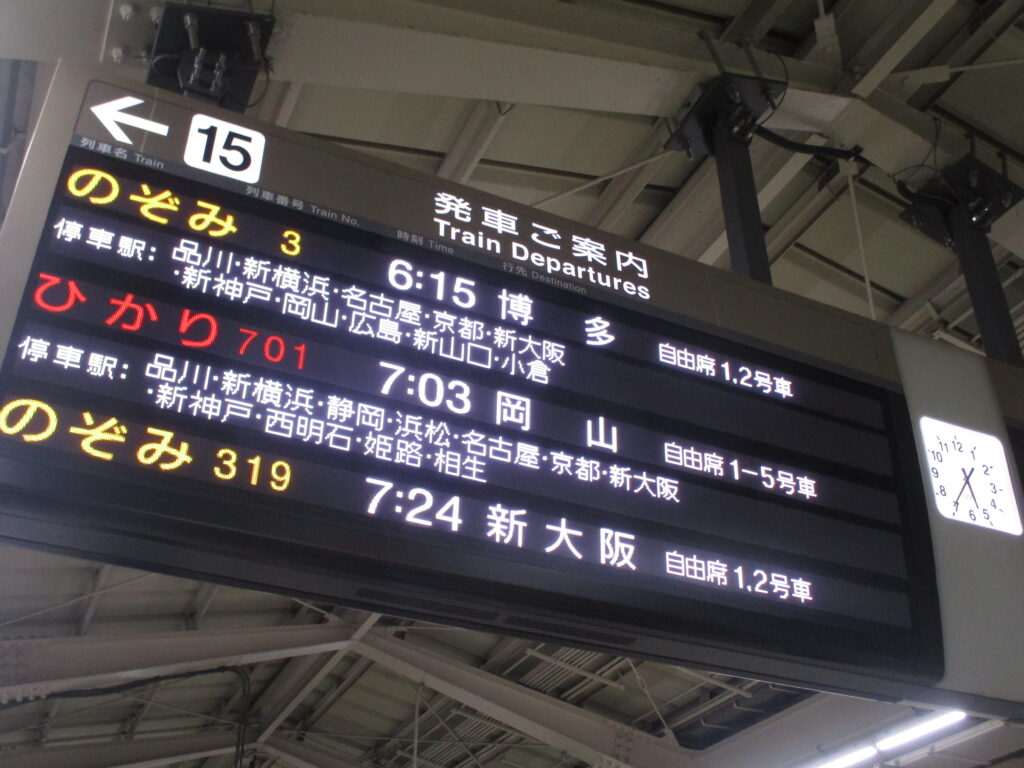 乗車するのは、6時15分発ののぞみ3号「博多行」。東京駅から新山口駅へ向かう始発列車です。