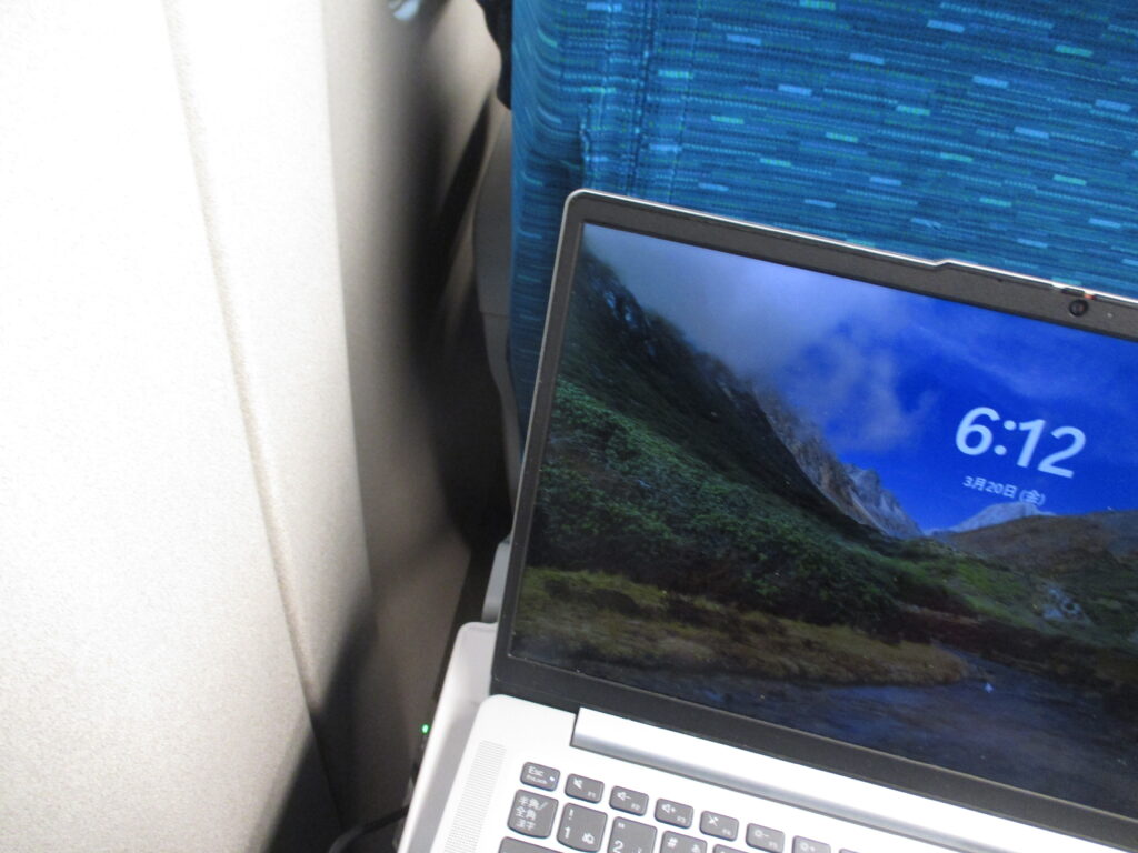 コンセントも使える位置でひと安心です。そして、のぞみ3号も通路までぎっしりと埋まった状態で、東京駅を定刻通りに出発しました。