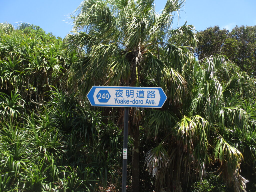 父島をぐるりと囲むのは、総延長23.1kmの都道240号線。東側の区間には「夜明道路」という愛称が付けられており、小笠原諸島ならではのユニークな道路標識が数多く設置されています。