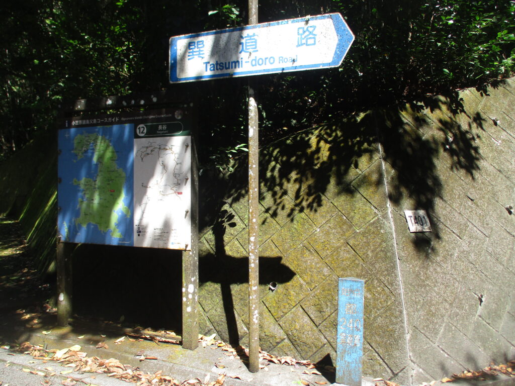 こちらは「巽道路」への分岐点。「巽」には東南の方角を示す意味があり、その名の通り夜明道路から島の東南方面に伸びている道路です。終点は行き止まりになっています。なお、看板では「巽」の上部が「己己」ではなく旧字体の「巳巳」で書かれていました。