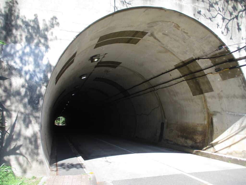 途中いくつかトンネルを通りますが、歩道があるので徒歩でも安心です。