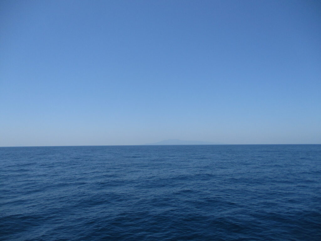 11時半頃、水平線の先に伊豆大島の島影が見えました。このあたりまで来ると電波もほぼ回復し、日常へ戻っていく感覚が強まります。