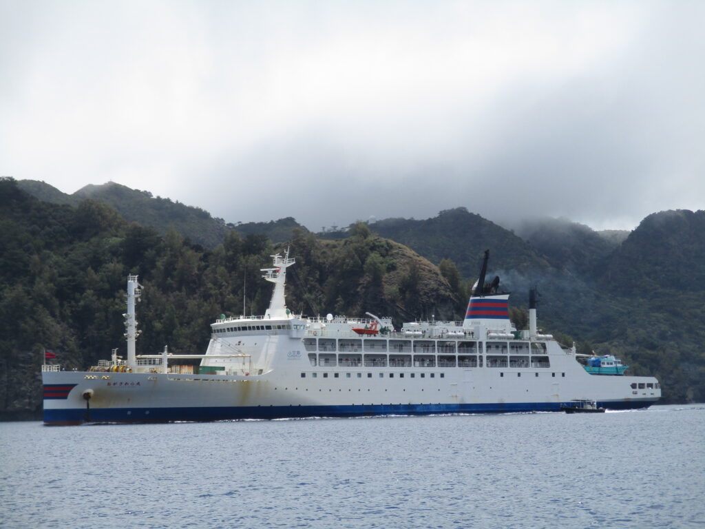 かつては旅客も乗船できた時代があったそうです。船内にはベッドが備えられ、食事も提供されていたといいます(しかも安かった)。正確な所要時間は分かりませんが、現在の運航スケジュールを見る限り、おがさわら丸よりも時間がかかるようです。さらに船体も小さいため、かなり揺れたことでしょう。