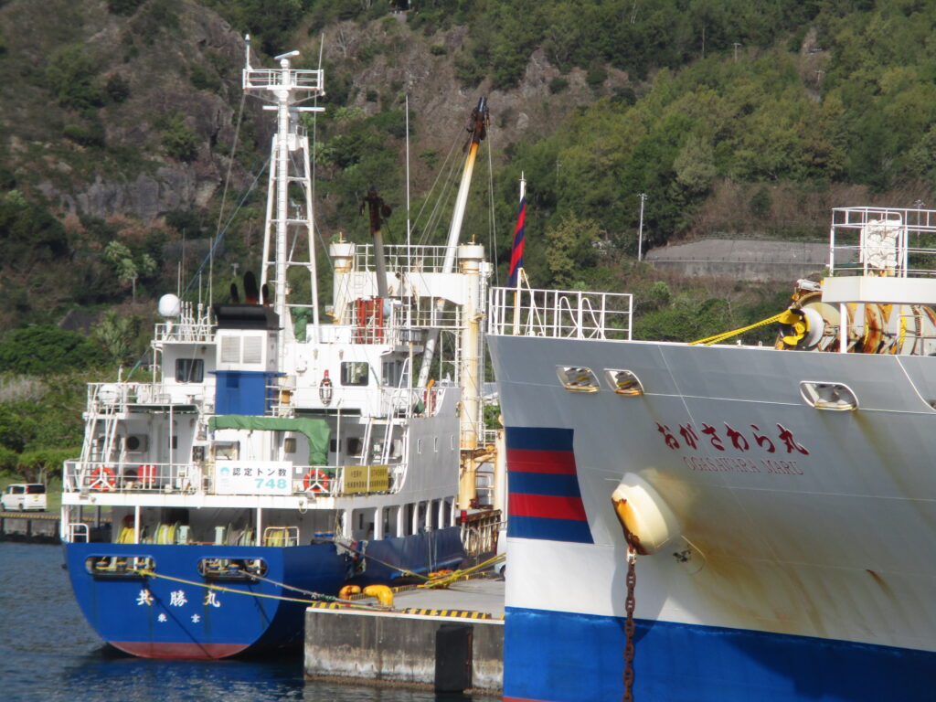そして何より重要なのは、この船が本土と母島を直接結ぶ唯一の船であること。おがさわら丸は父島止まりで、ははじま丸に乗り換えが必要ですが、共勝丸は東京・月島発、父島経由母島行の定期船。小笠原諸島の有人島である父島&母島と本土は、おがさわら丸・クルーズ船・自衛隊の航空機、そして共勝丸で結ばれているのです。