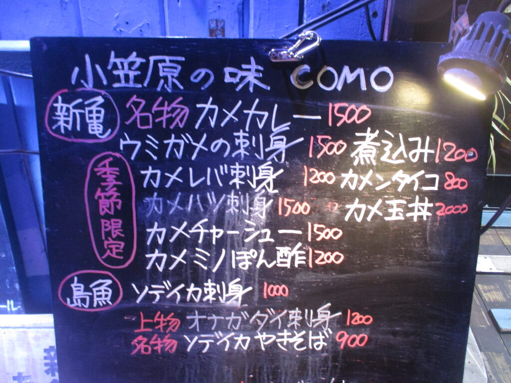 古くからアオウミガメが食文化の一部として受け継がれてきた小笠原。現在は東京都の管理のもと、年間135頭の捕獲が認められています。海況が落ち着く3月頃から漁が始まり、4月下旬は漁期の終盤にあたるそうです。【カメ漁の時期=新カメシーズン】といわれ、島内の飲食店では様々なカメ料理が提供されています。