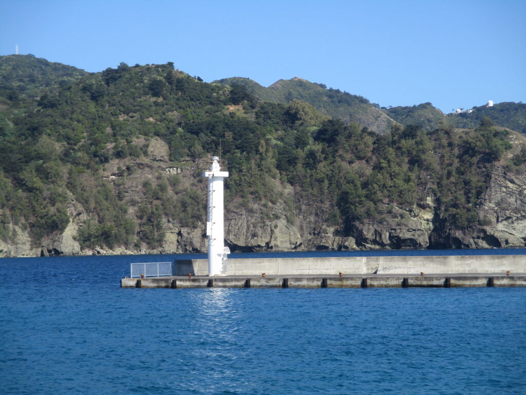 場所はこちら。おがさわら丸が入港する岸壁のすぐ横です。青灯台は観光客向けのパンフレットには紹介されていない島民の遊び場。