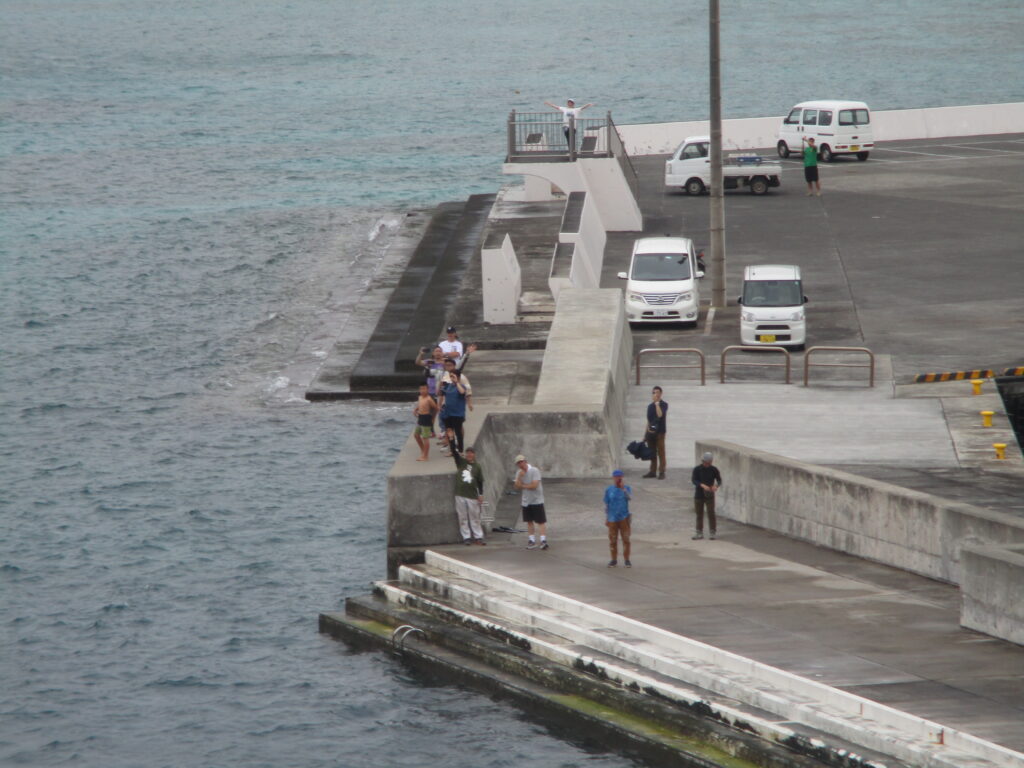 また、おがさわら丸が出港するときに、青灯台の堤防から海へ飛び込んでお見送りをする人もいます。