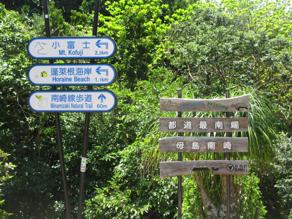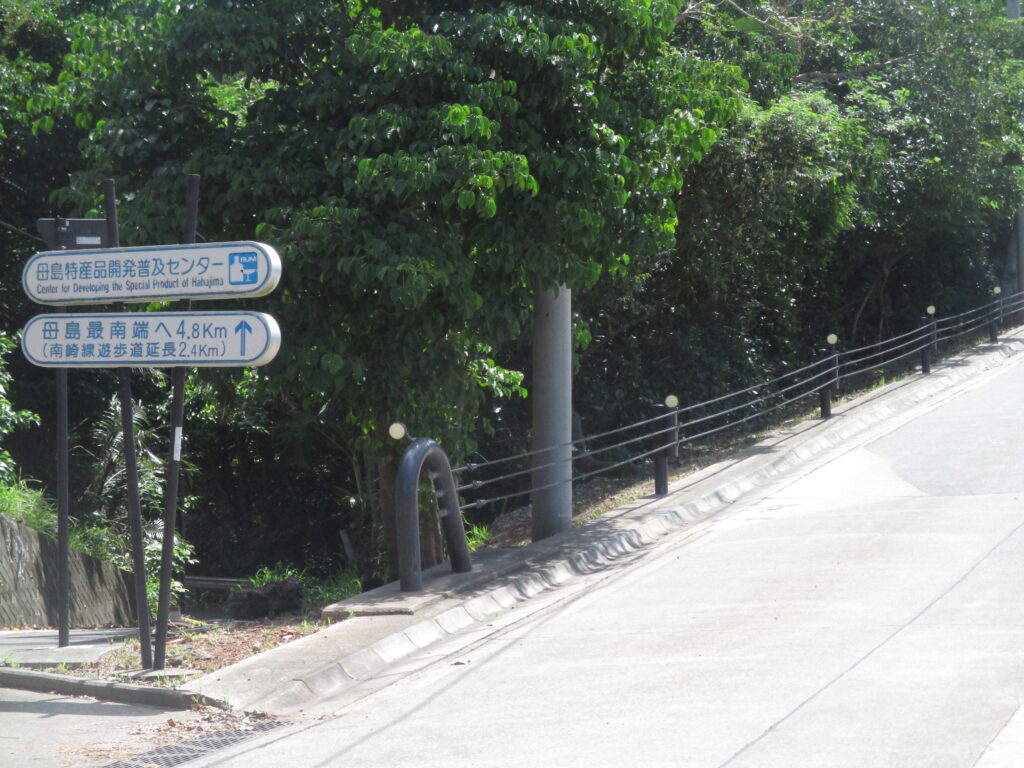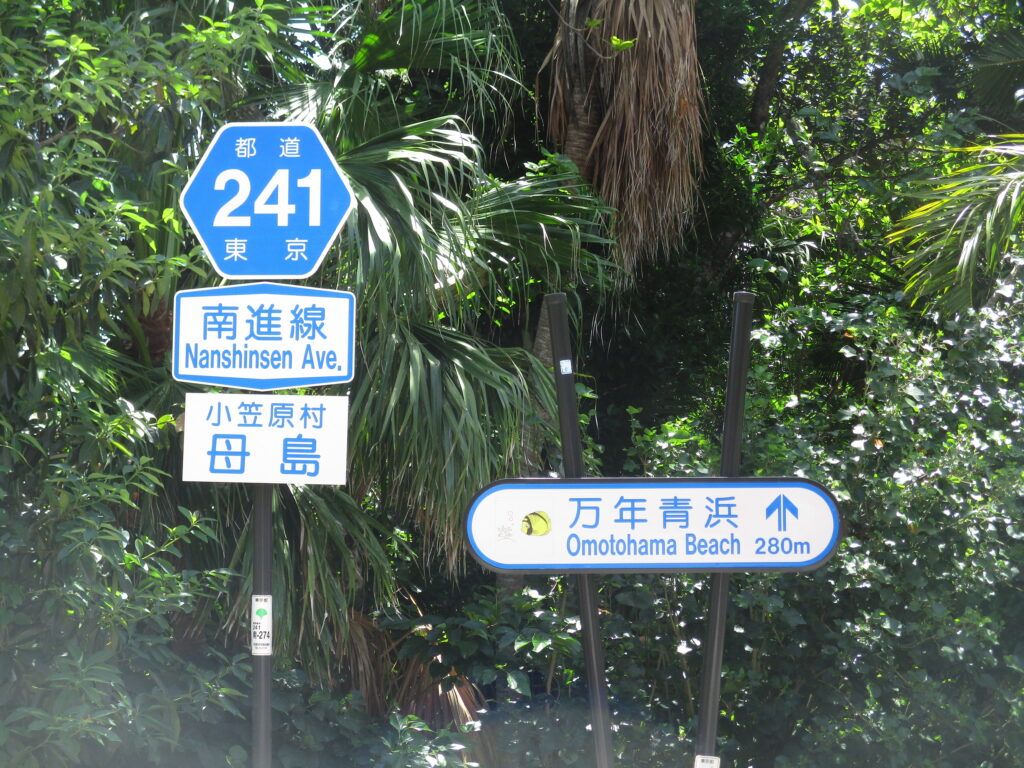 母島を南北に貫く道は「一般都道沖港北港線(241号)」。沖集落を起点に北進線と南進線に分かれており、私たちが目指すのは南進線の終点、つまり「都道最南端の地」です。