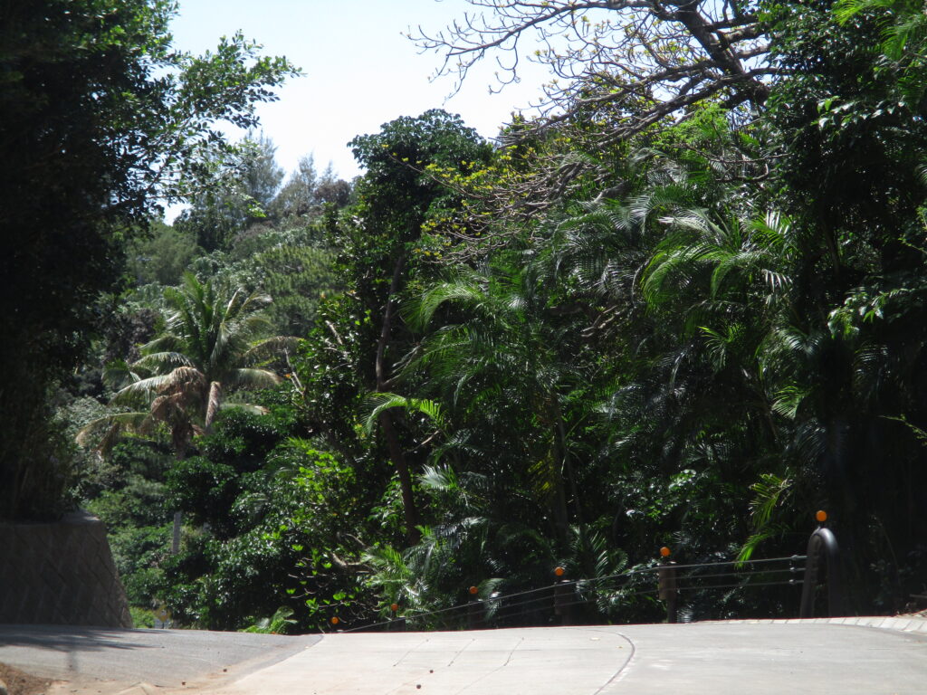 この景色はジャングルそのもの。気象庁の観測地点が母島にないため、正確なことは分かりませんが、父島と同様に沖縄よりも降水量は少ないと考えられます。ただ、父島と母島で天気が異なるというのもよく聞く話です。