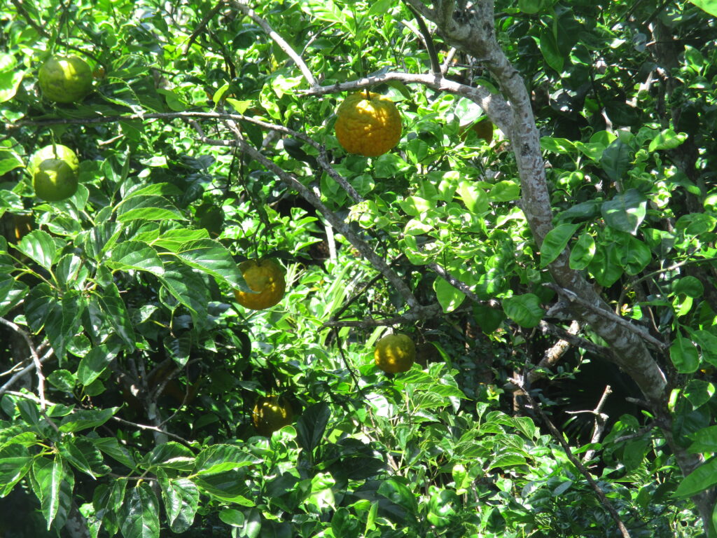 茂みの中に放置された謎の果実を発見しました。戦争による全島民疎開の影響で、小笠原には不在地主が多く、このように土地が放置され、以下のような問題が発生しているそうです。
