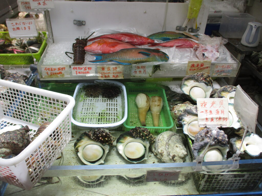 市場全体の雰囲気はガラッと変わりましたが、お店には本州では見られないような色の魚が並んでいたり…