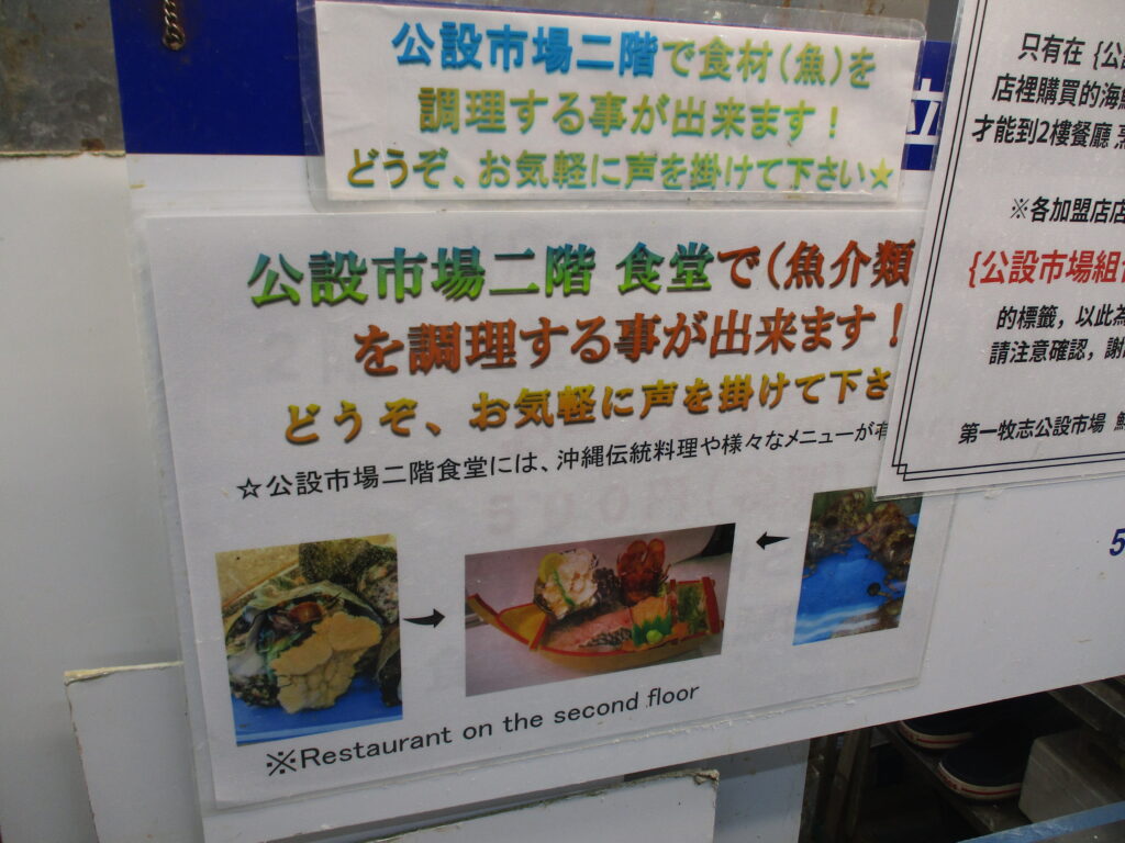 中に入るとこんな感じ。1階にお店が並び、2階が食堂となっています。以前の公設市場には、異国情緒が漂う独特の明るさや匂い、湿気があり、良くも悪くもカオスな空気がありましたが、そうした雰囲気は薄れ、全体として綺麗に整えられた観光地という印象を受けます。