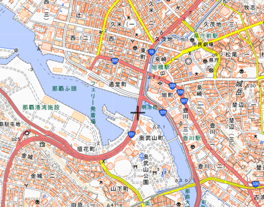 2025年1月4日、那覇市・国場川の河口にかかる国道58号線の明治橋にやって来ました。ここは沖縄の歴史を知ることが出来るおすすめのスポットです。