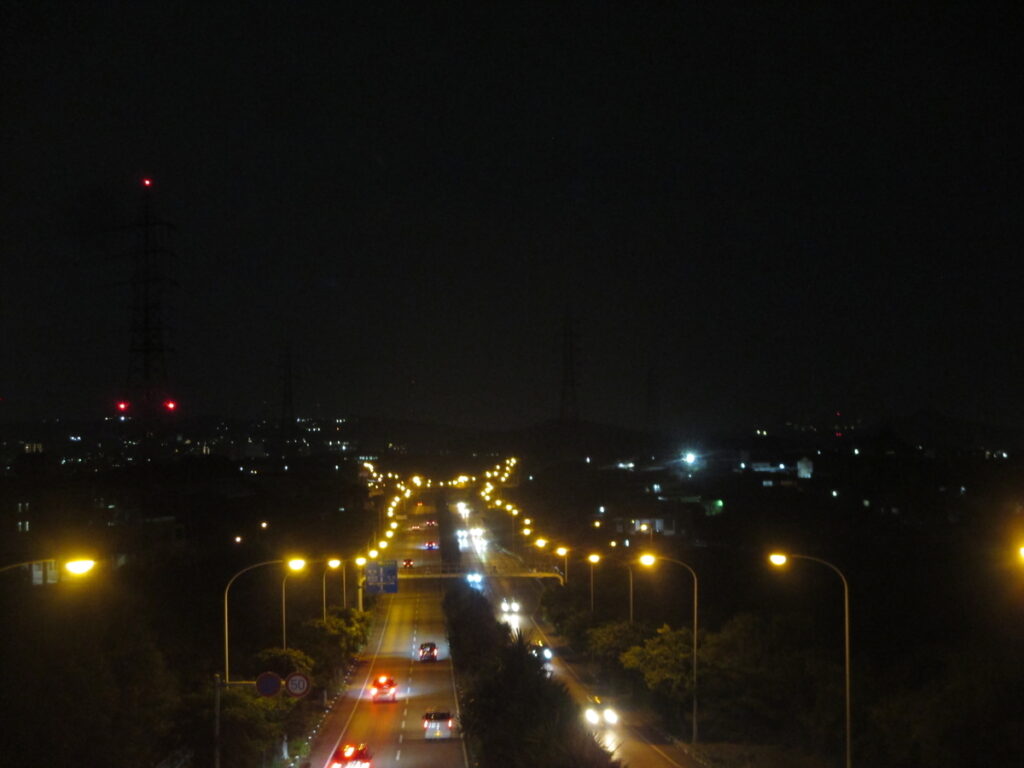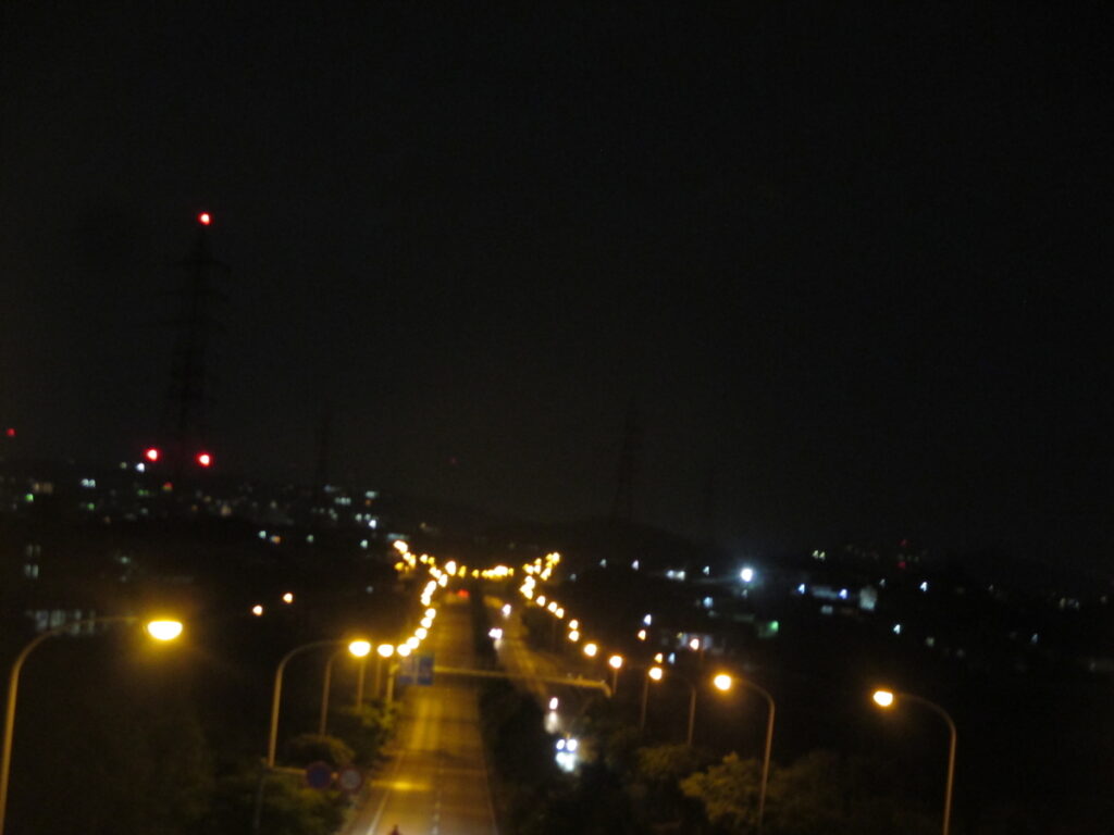 夜景の写真は手ぶれしやすく、さらに橋には高い柵があるので、いい姿のピカチュウを撮るのはなかなか難しいです。