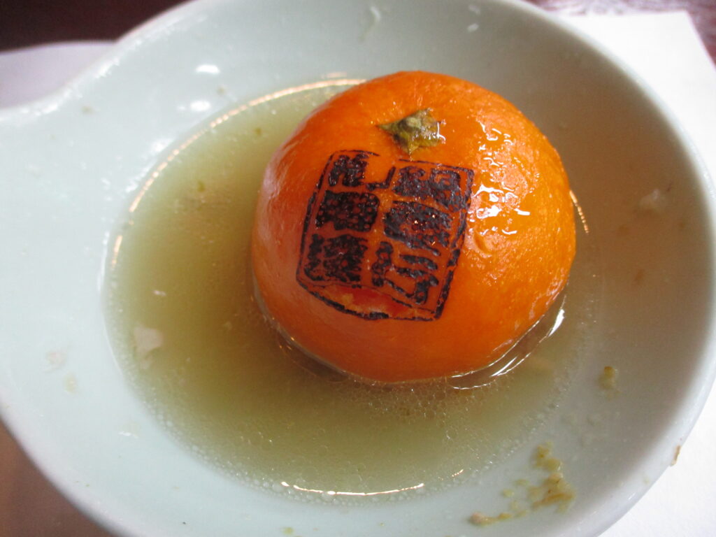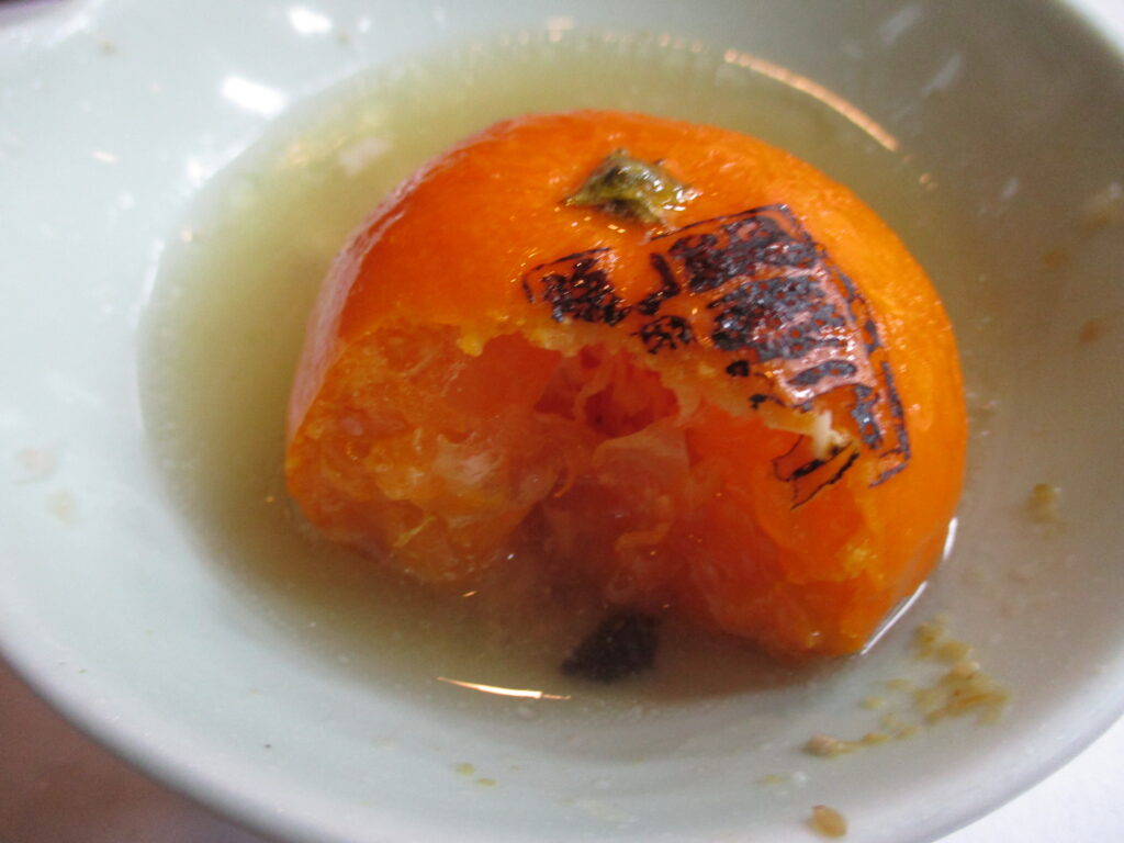 そして、みかんは皮ごと食べます。しっかり煮込まれているため皮は柔らかく、違和感はありません。もちろん味も美味しいです。