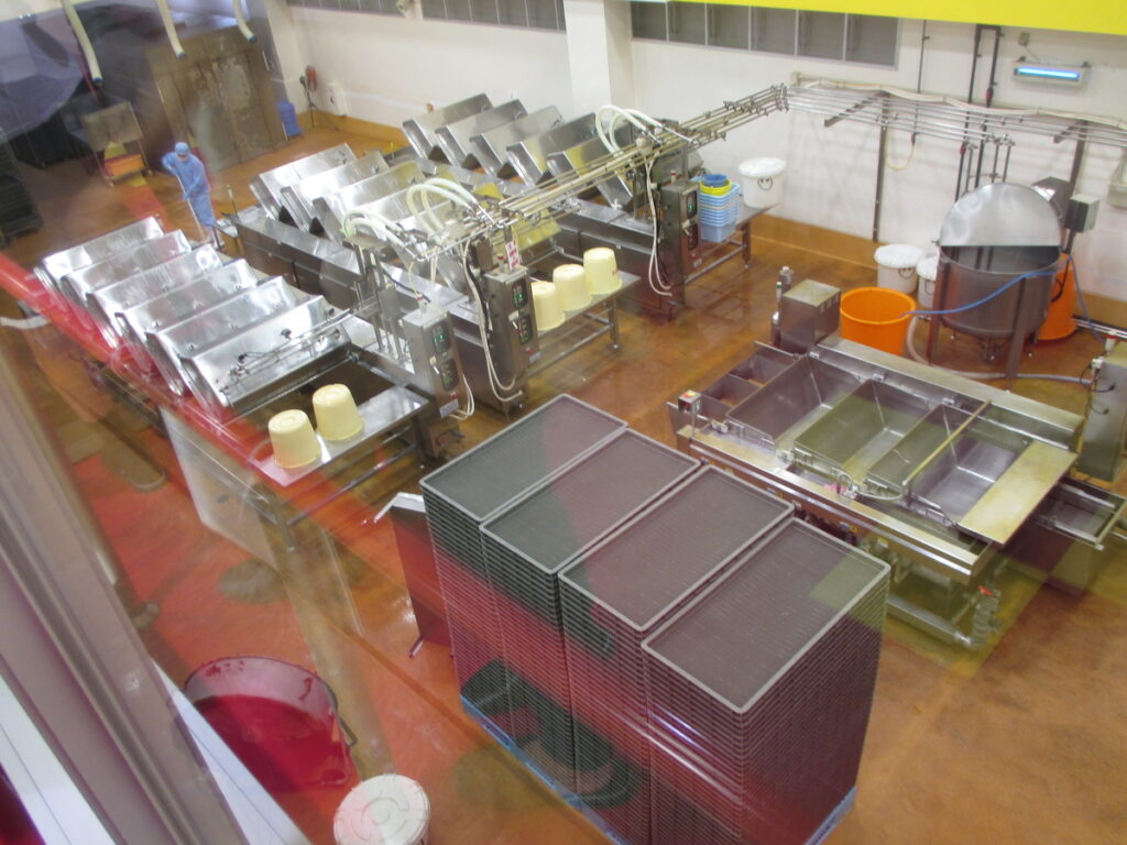 時間になり工場見学がスタート。ガイドさんが工場内を案内してくださります。私が訪れたのは平日のお昼過ぎでしたが、写真の通り、私以外にも参加されている方が数名いらっしゃいました。