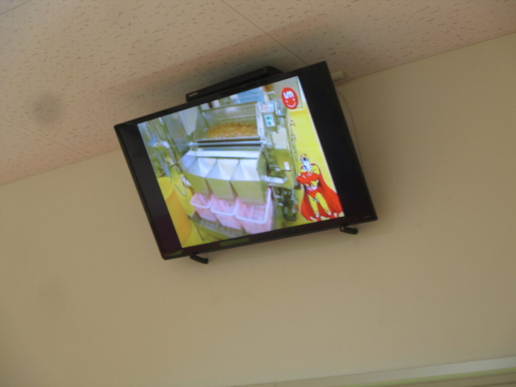ここではスッパイマンエプロンを着用した方々の目視による、選別作業が行われています。