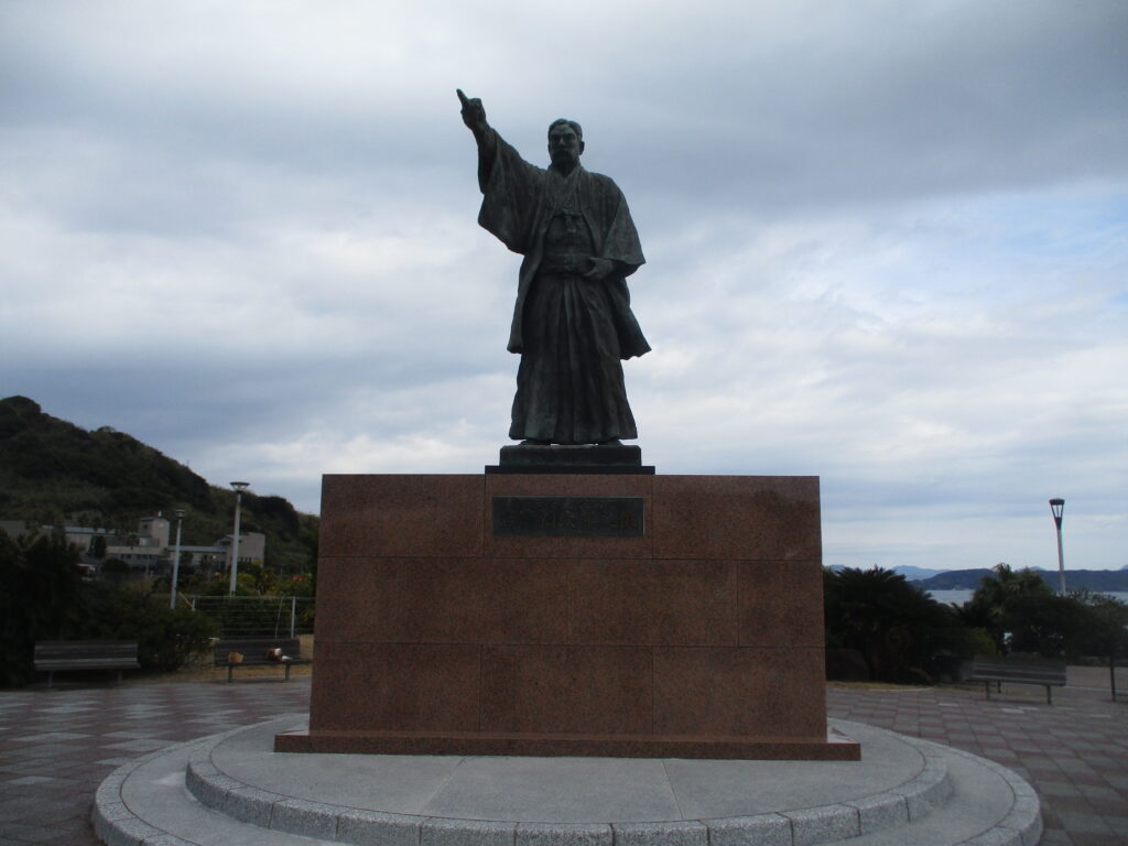 そして、石炭資料館の向かい側に立っているのが、三菱の創業者・岩崎彌太郎の像です。資金繰りに苦労していた高島炭鉱を1881年に買収し、事業を軌道に乗せたことから、島の英雄的な存在となっています。