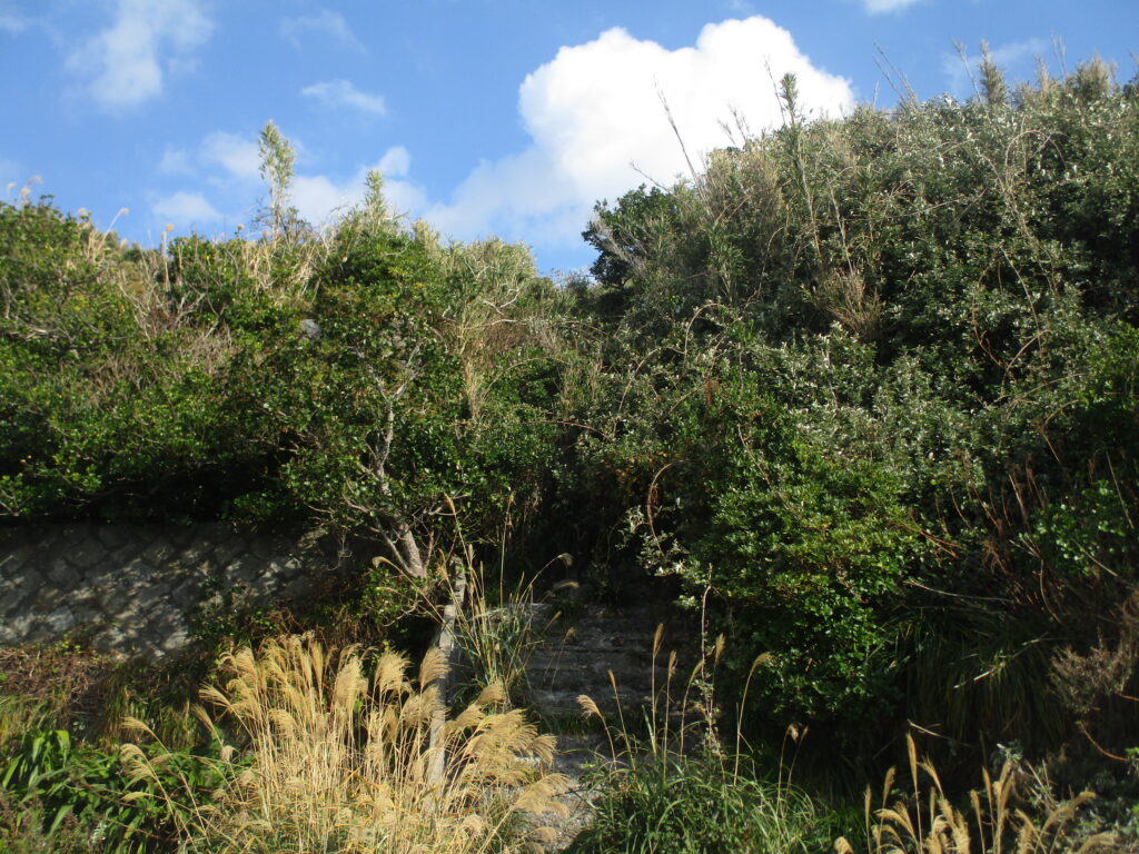 時刻は13時、帰りの船は15時です。ここからは島の西側を歩いて北上し、世界文化遺産・高島炭坑北渓井坑跡を目指します。