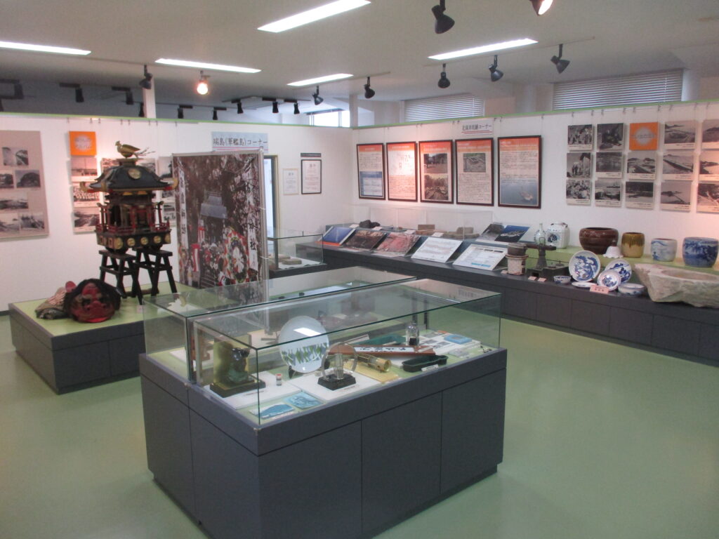 2階には、北渓井坑跡で発掘された出土品や、かつて端島(軍艦島)のお祭りで使用されていた御神輿などが展示されていました。