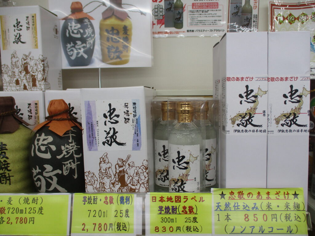 こちらは「忠敬」という名前の焼酎や甘酒。