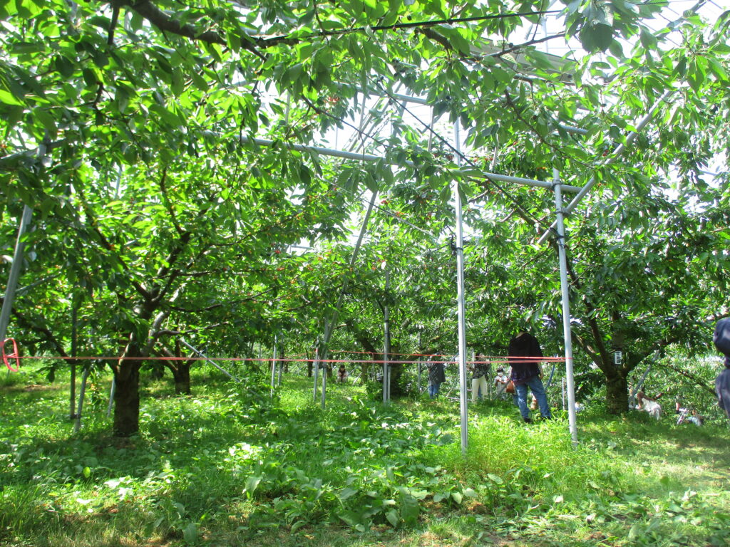 ということで、さっそくサクランボ狩りスタート!この日は晴れていましたが、雨天でも頭上に雨よけビニール付いているので、雨に濡れる心配はないとのこと。