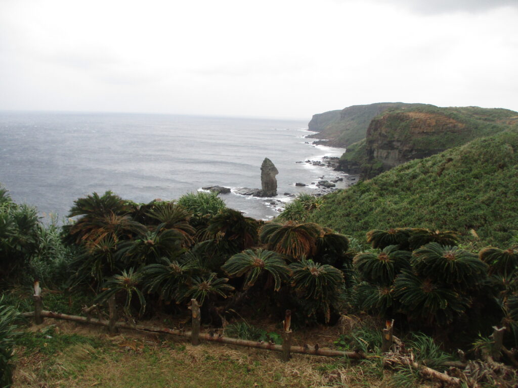 途中に展望台があったため寄り道しました。中央に立つ立派な岩は「立神岩」と名付けられ、観光協会のホームページでは「与那国島のシンボル」と紹介されています。高さは25〜30mもあるそうです。